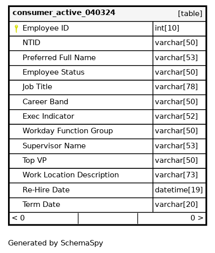 | Employee ID | INT | 10 | null |