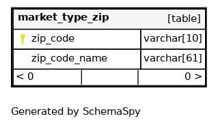 | PRIMARY | Primary key | Asc | zip_code |