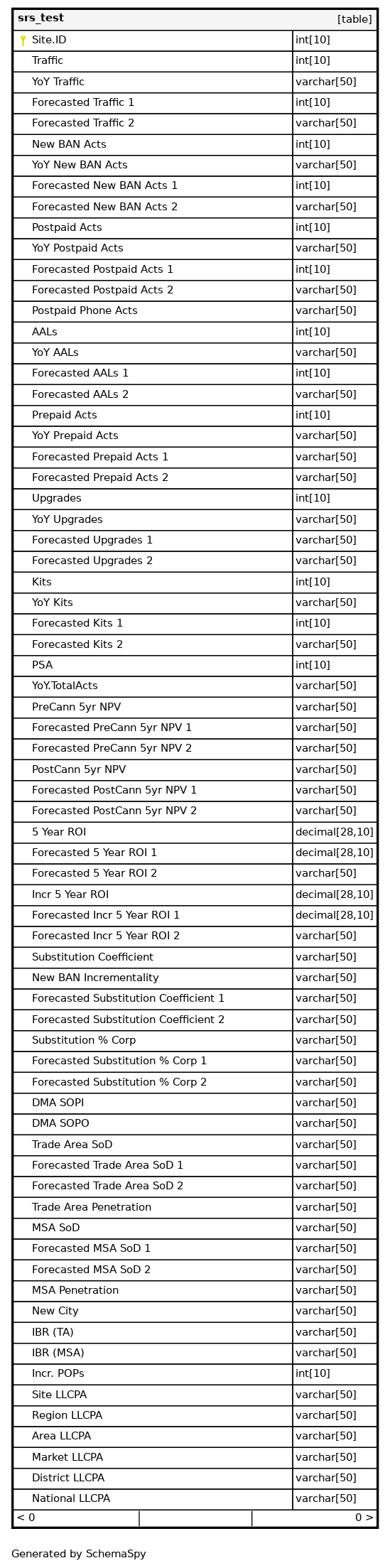| Site.ID | INT | 10 | null |